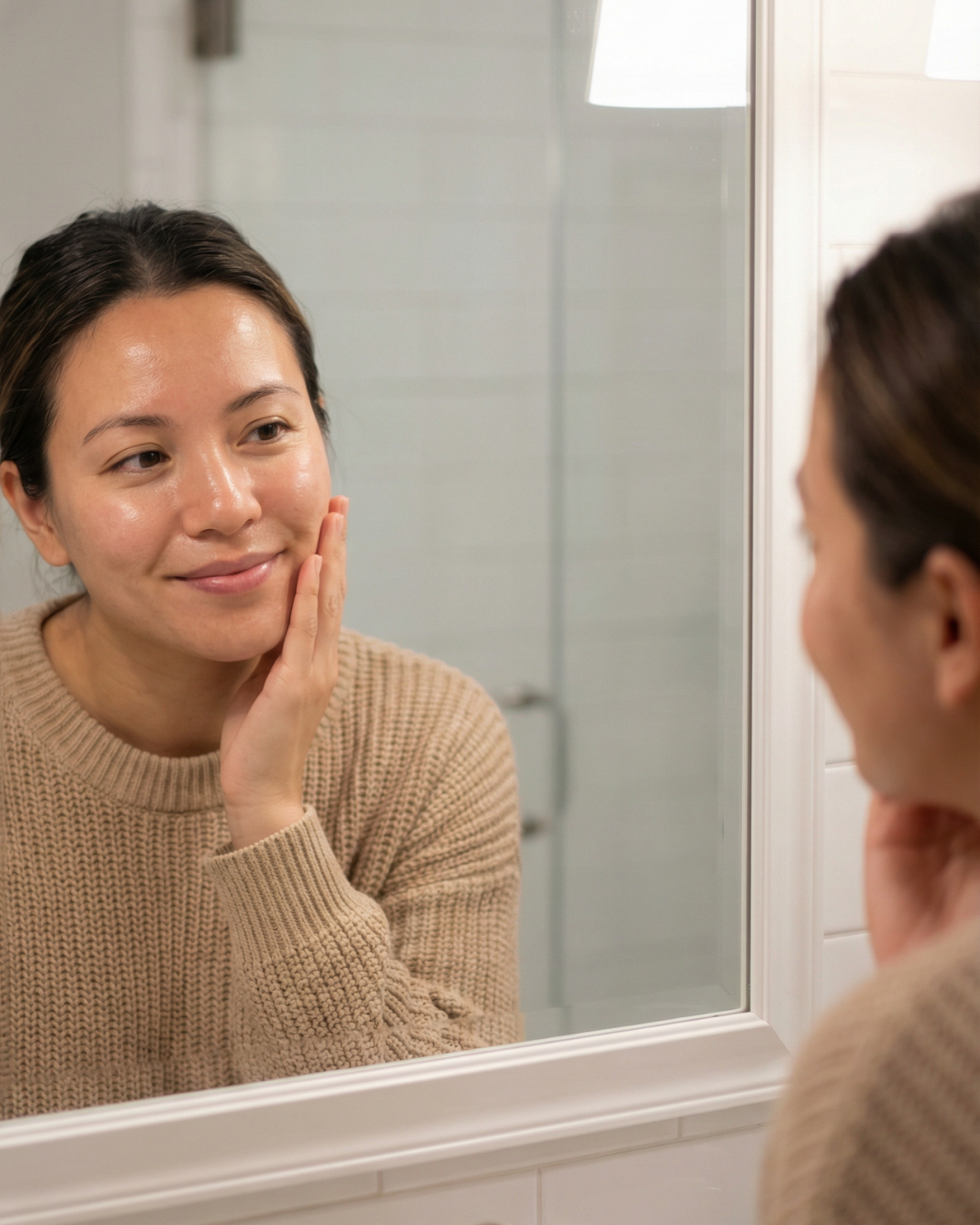 - Apply evenly to the face, neck, and décolleté, blending well.